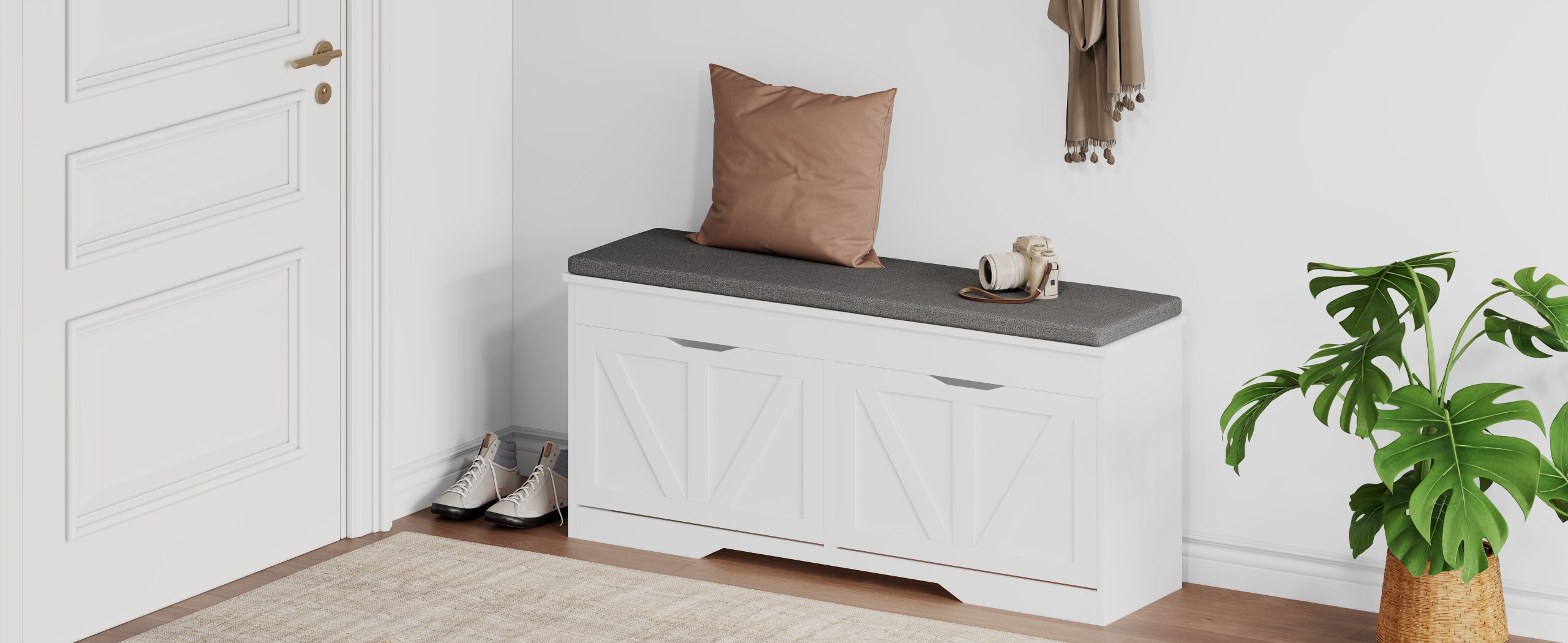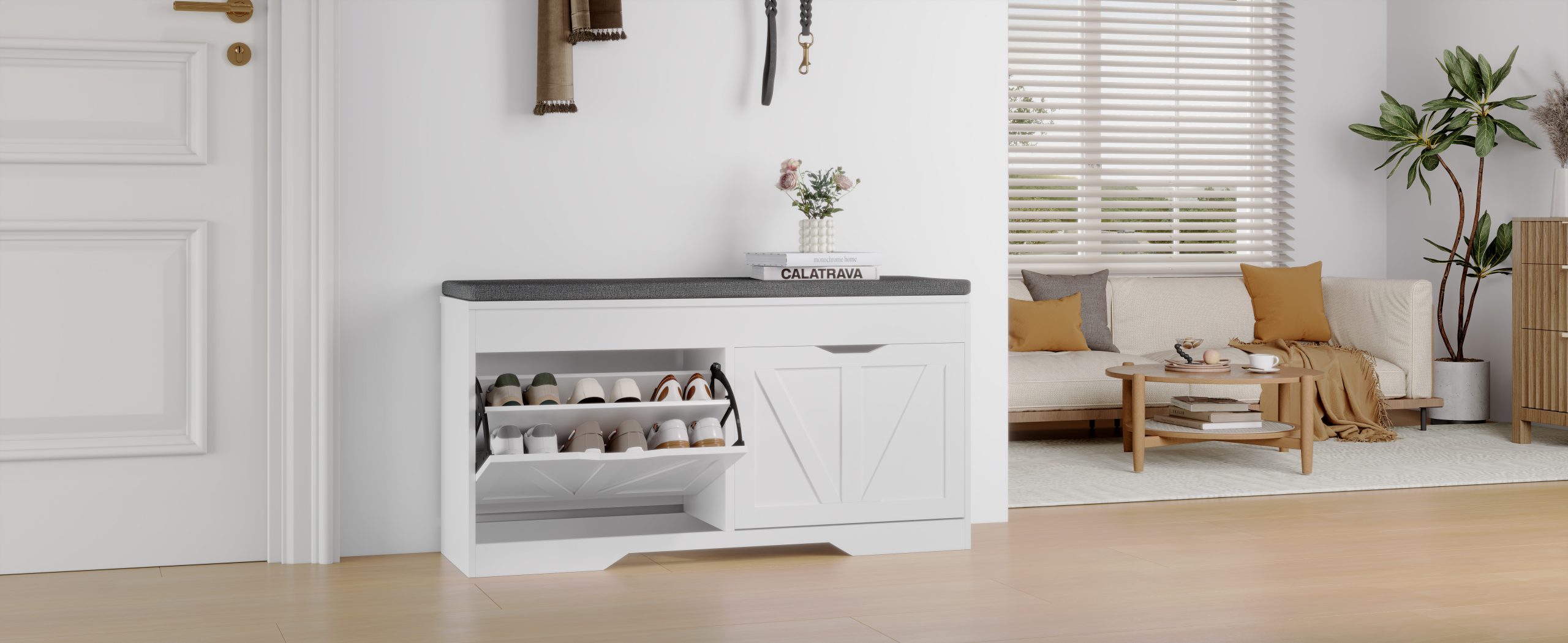 WOSSYO Shoe Storage Bench – White(With Extra Storage)