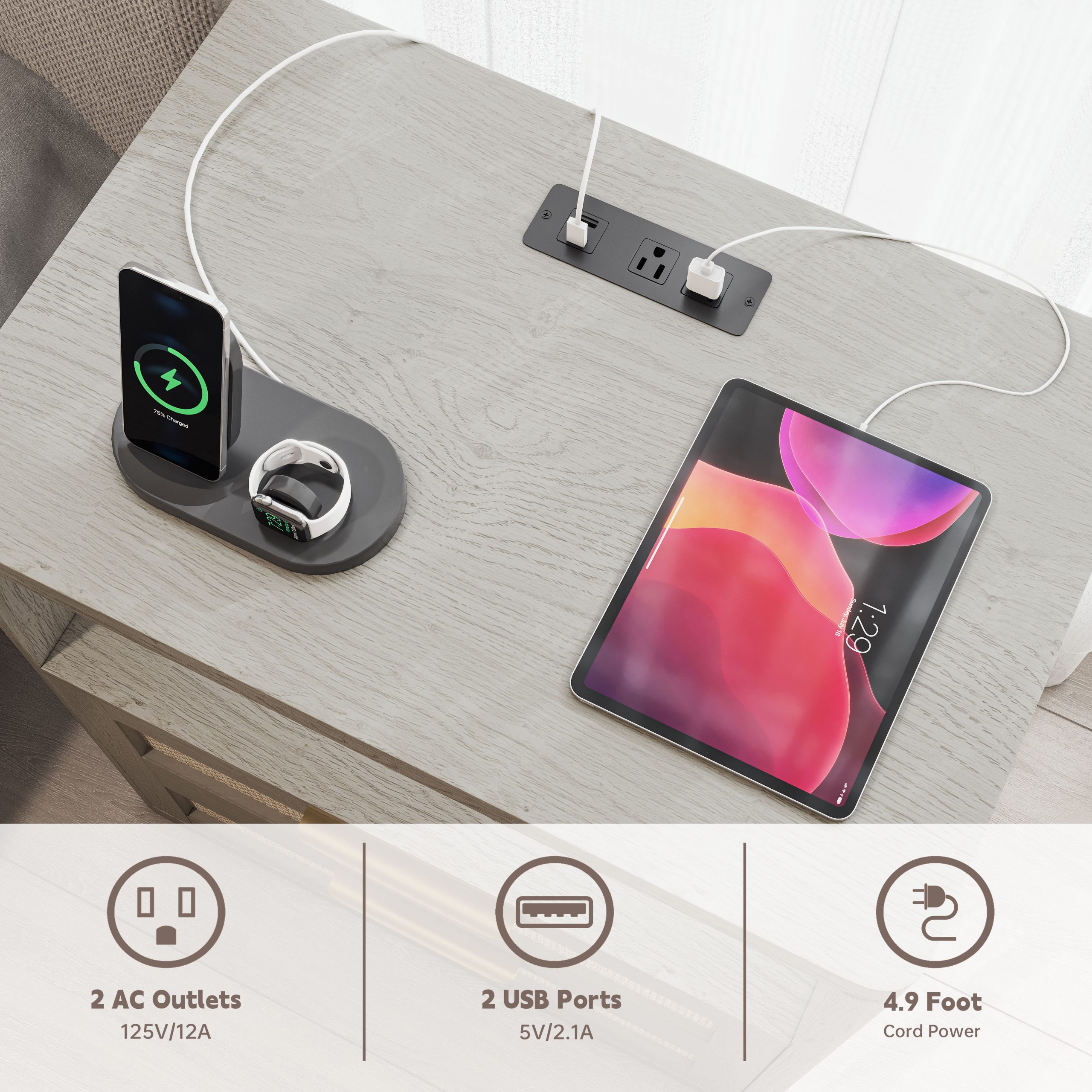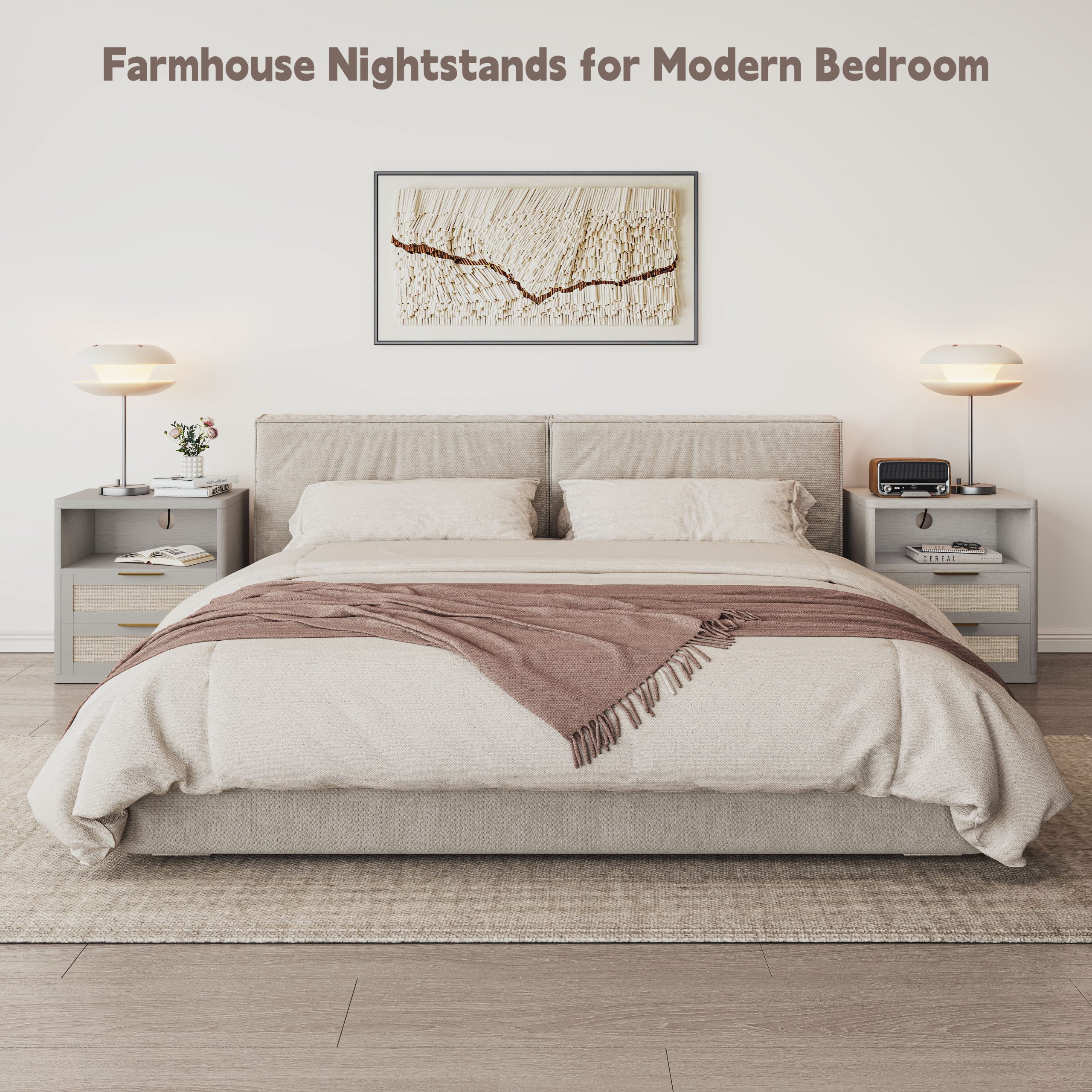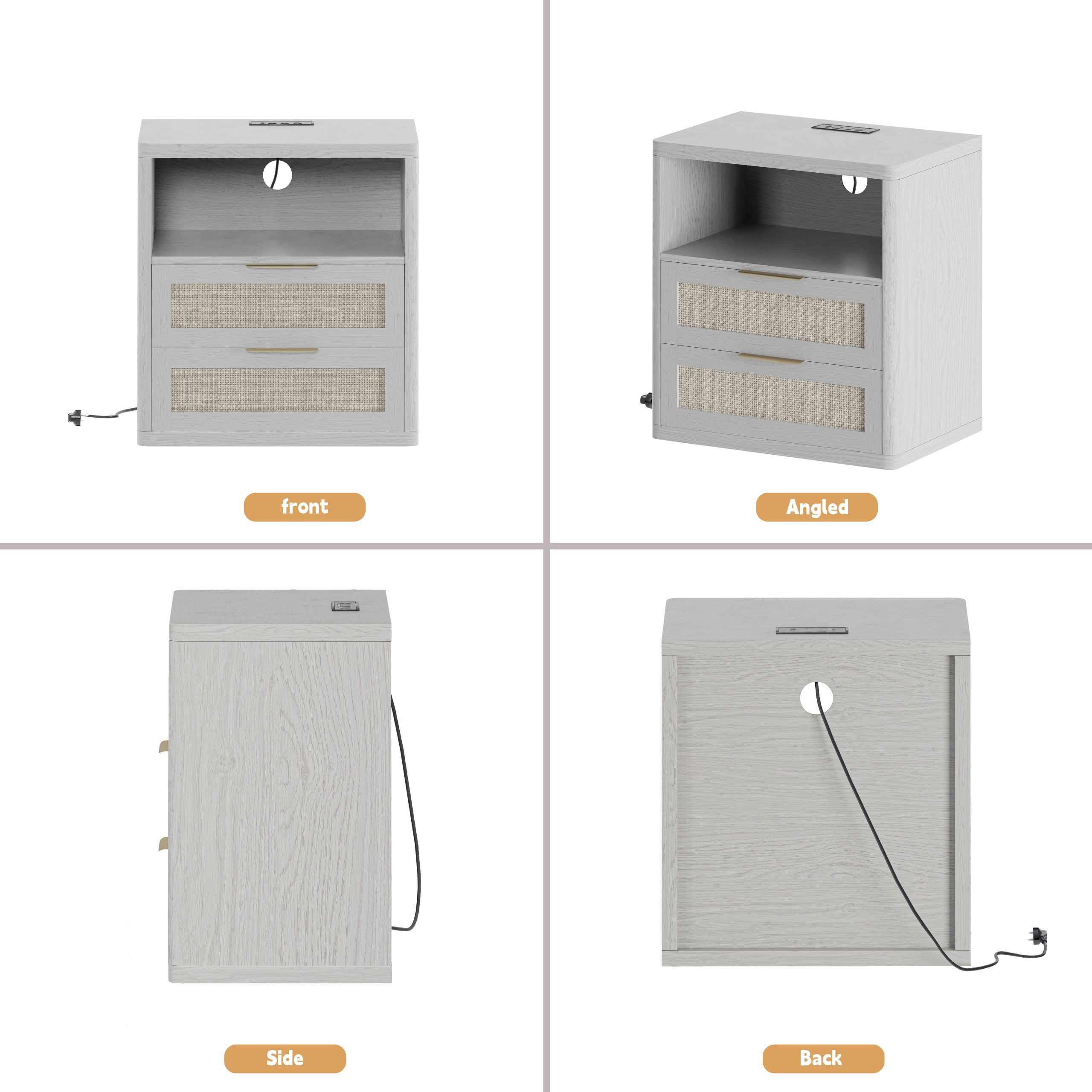 • 【 Charging Station】 This boho nightstand comes with 2 Standard AC Power Outlets and 2 USB ports will fully satisfy your charging needs. You can charge it at hand anytime without an additional socket. Whether you need to charge your phone, tablet, or even power a bedside lamp, all devices remain organized and easily accessible.